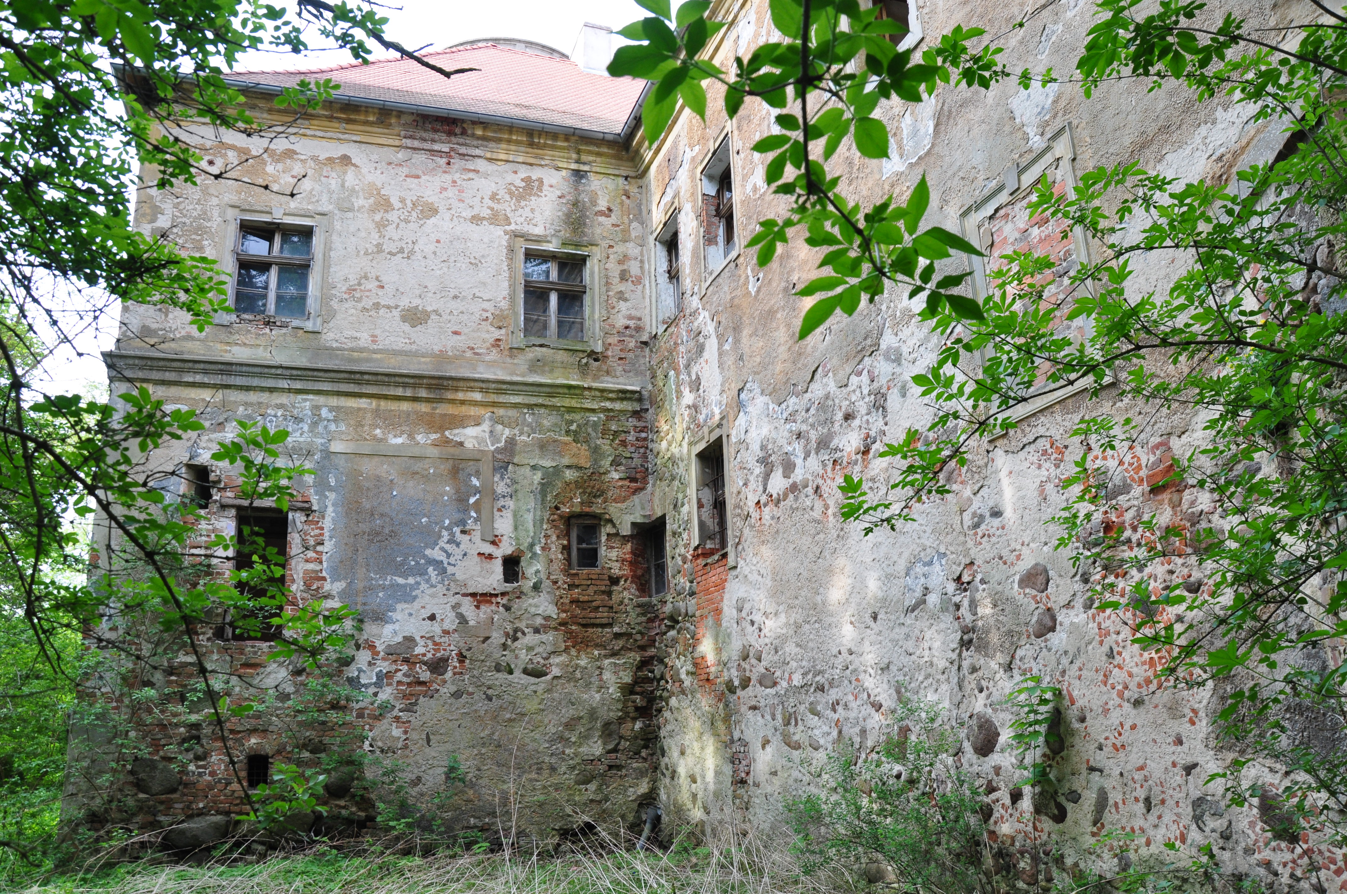 Obecny pałac nie jest bynajmniej barokowy. Dwór szczęśliwie był rozbudowywany, lecz niewiele przebudowywany. Oprócz południowo-zachodniego barokowego skrzydła z neoklasyscystycznym portykiem i górnych kondygnacji wieży w stylu italianizującego gotyku, pozostała część pałacu zachowała renesansową formę. Warto dodać, że zewnętrzne ściany dawnego dworu, pod opadającym XIX-wiecznym tynkiem, ukazują sgrafittową dekorację przygód króla Artura i jego rycerzy.