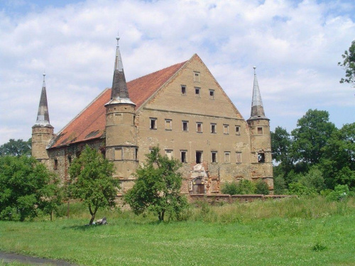 dwór obronny został wzniesiony około 1585 roku przez rycerza Jacoba von Zedlitz. Budowla w stylu renesansowym , na rzucie kwadratu o wymiarach 27,4x29m z czterema 3-kondygnacyjnymi wieżami. Dwór otoczony był fosą fosą. Wokół dworu i zabudowań gospodarczych zachowały się resztki murów i wałów ziemnych. Dwór był przebudowany w latach 1698-99 przez Sigismunda Otto von Nostitza. Obecnie w stanie ruiny.