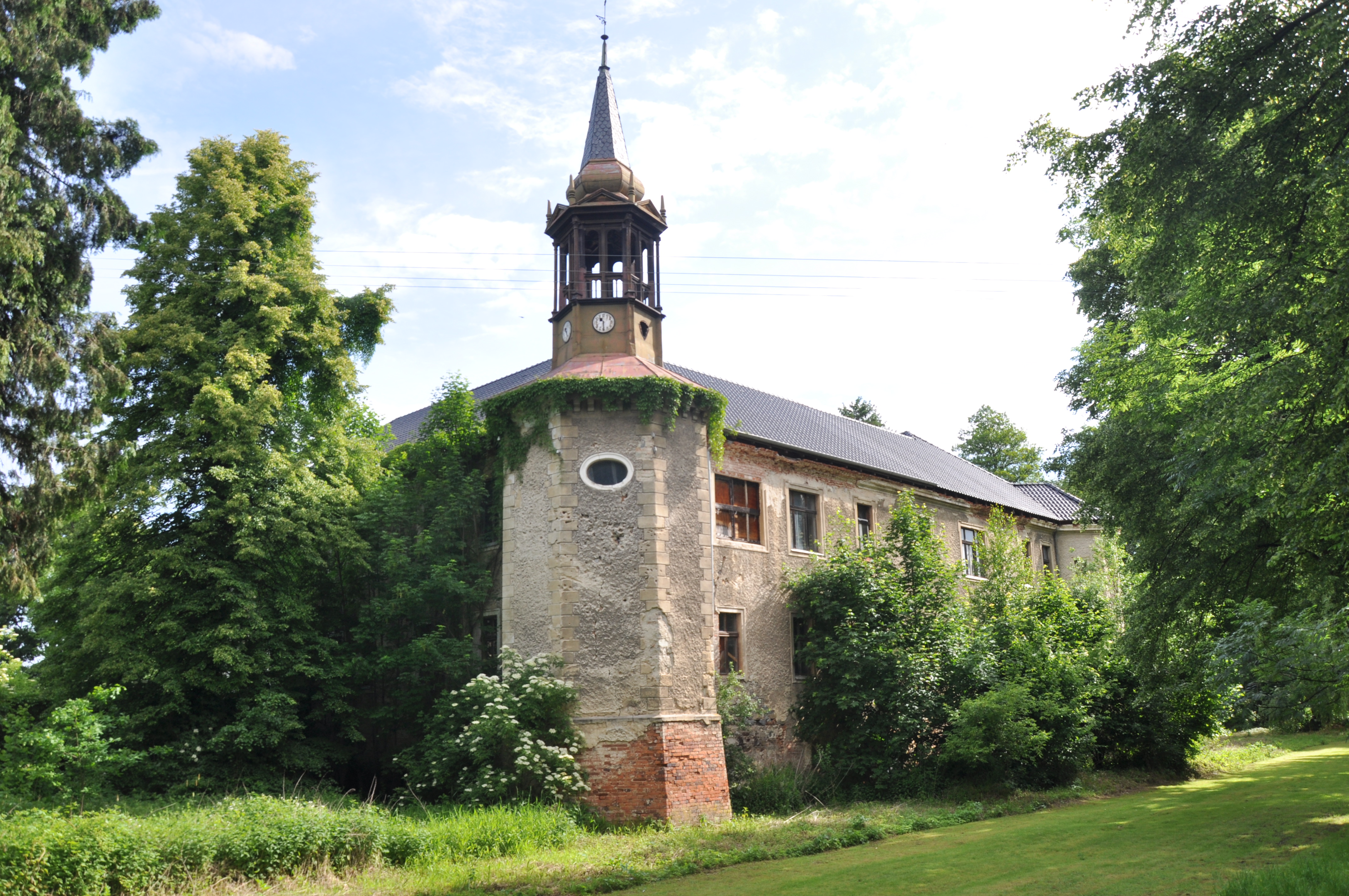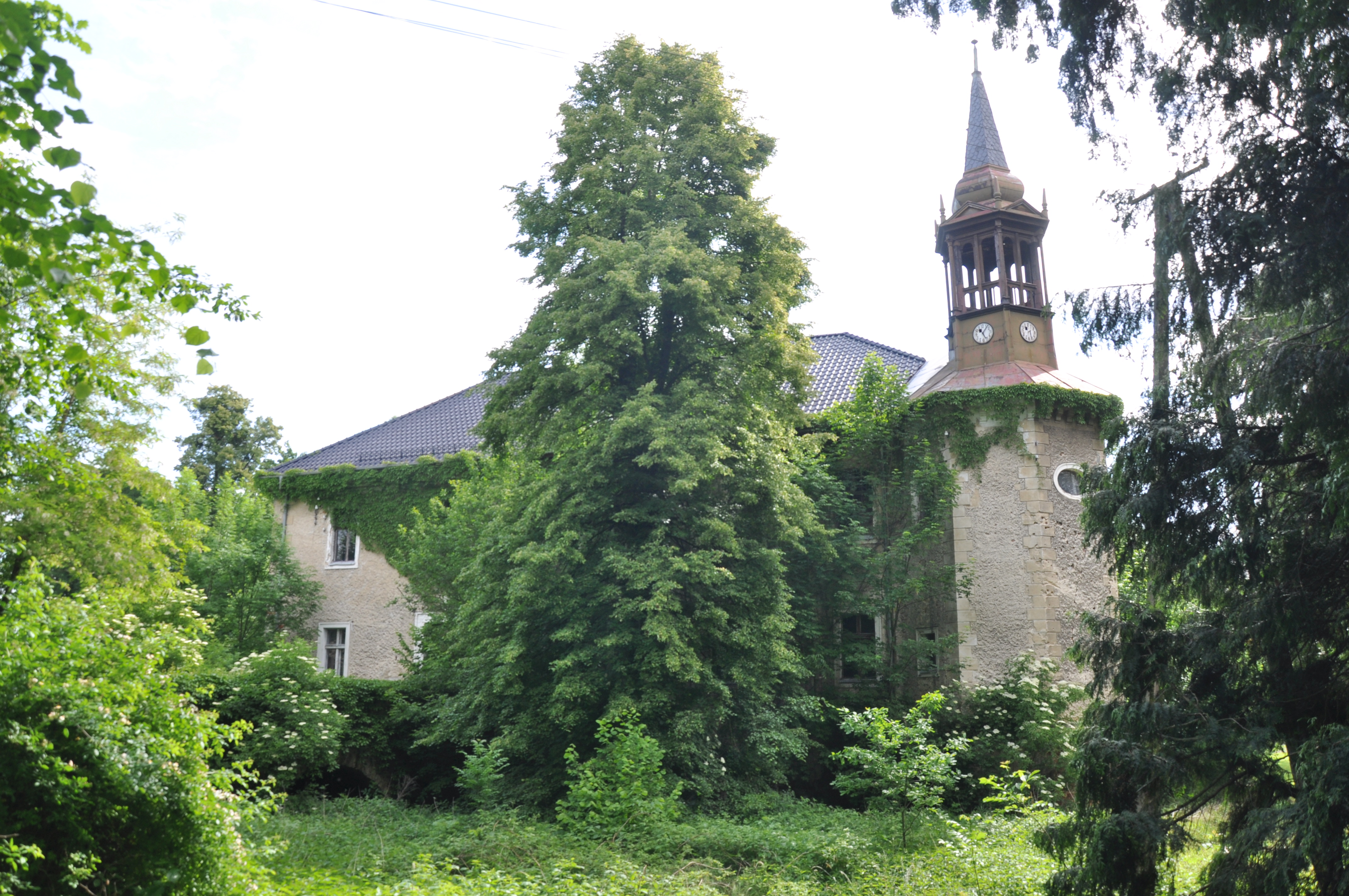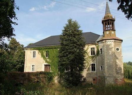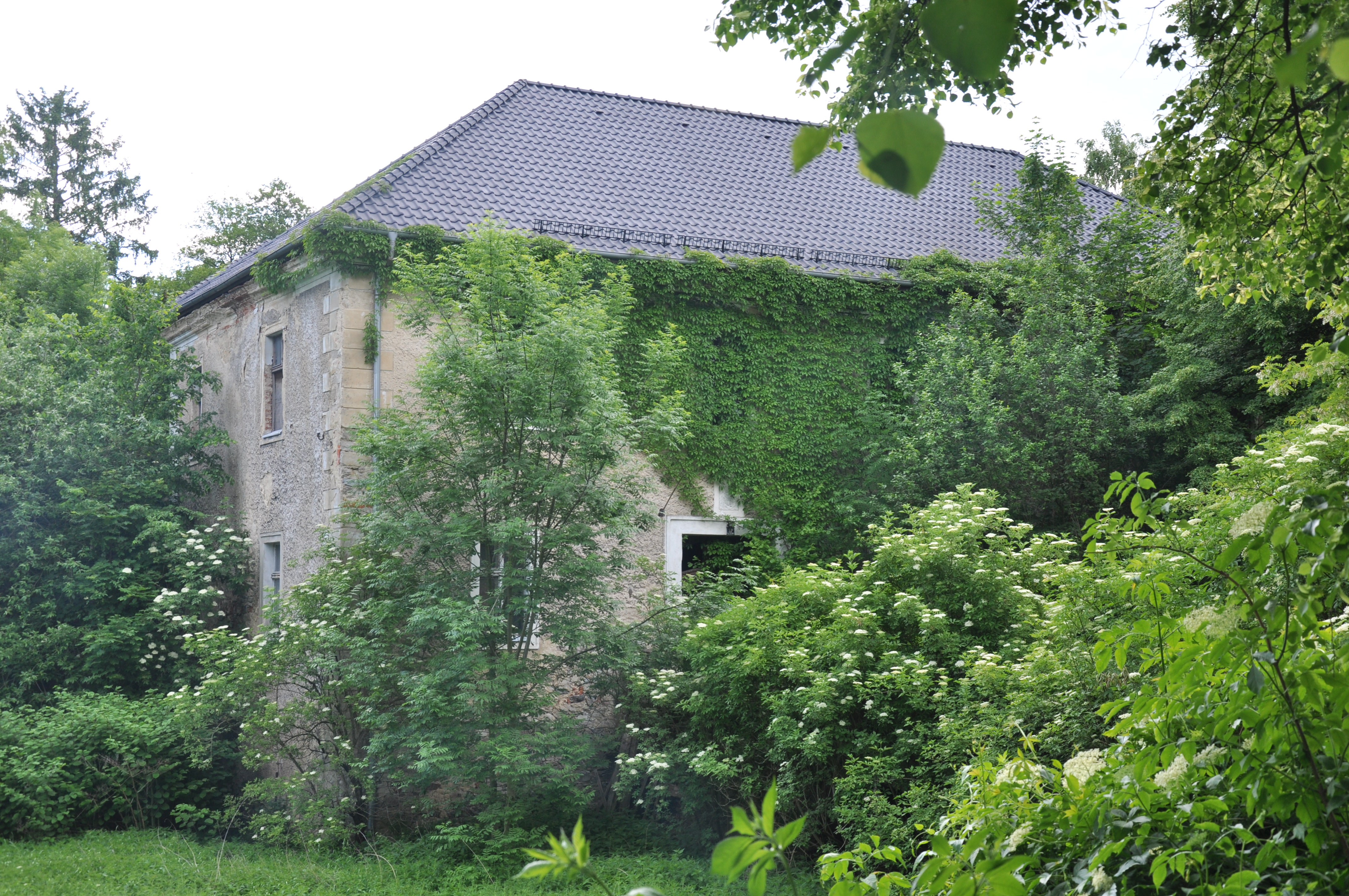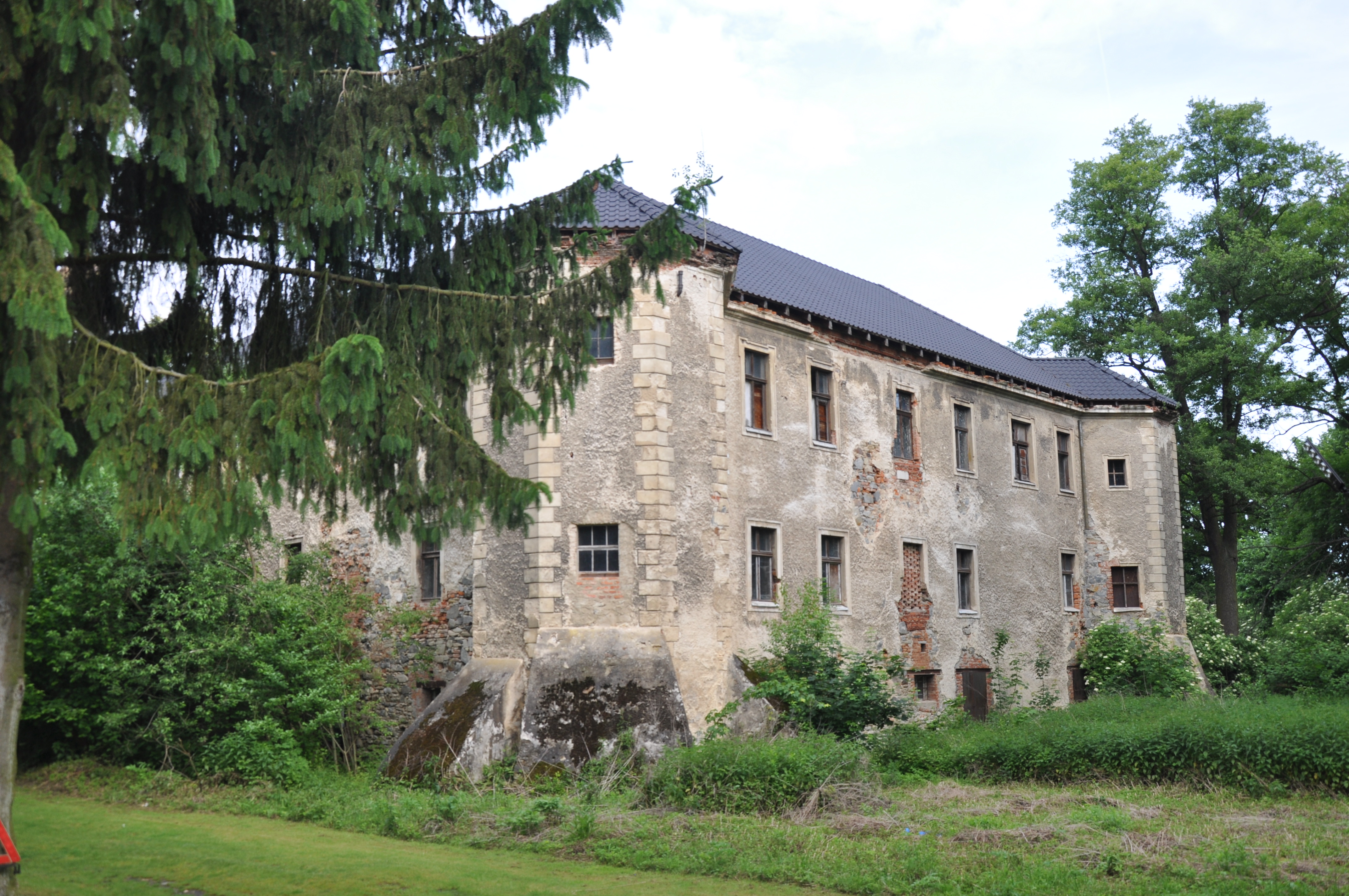 , a zaczyna korytko z wodą. Z 3 stron obiekt jest ładnie eksponowany, można nieuzauważonym podejść pod mury. Z czwartej jednak jest już dom (właściciela/stróża?) i co za tym idzie jest tam czwronożna bestia, więc z tej strony lepiej się nie pokazywać. (fot. wrzesień 2011)