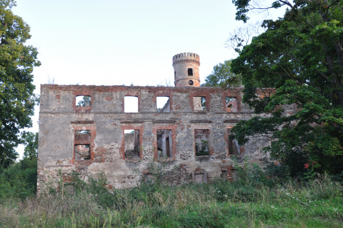 We wsi znajdują się ruiny dworu (wymienianego też jako zamek) wzniesionego jako renesansowa rezydencja w 1626 roku. Obiekt był rozbudowany w 1686 roku na styl barokowy. Kolejna przebudowa nastąpiła w 1718 roku i w XIX wieku. Został zniszczony w 1945 roku. Było to założenie prostokątne z cylindryczną wieżą w narożniku, dwutraktowe, dwukondygnacjowe z zachowanymi fragmentami renesansowych sklepień i obramień okiennych. Obecnie malownicze ruiny.