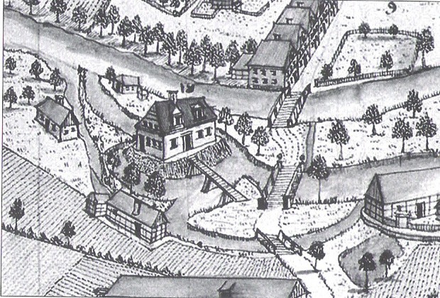 dwór w połowie XVIII wieku na rycinie F.B.Wernera
