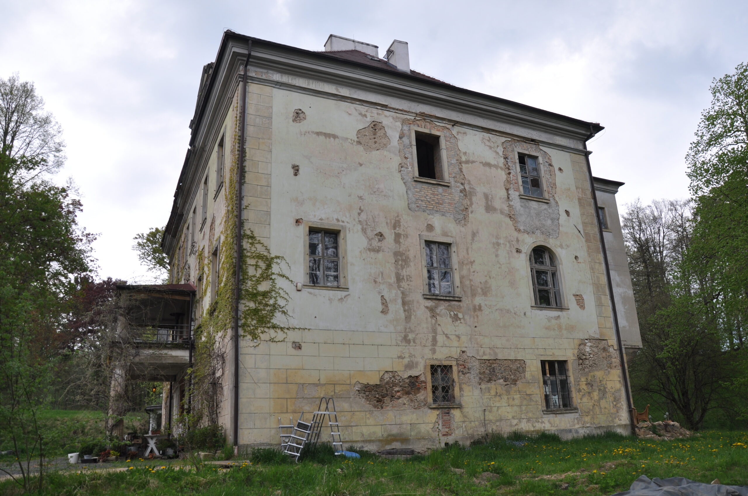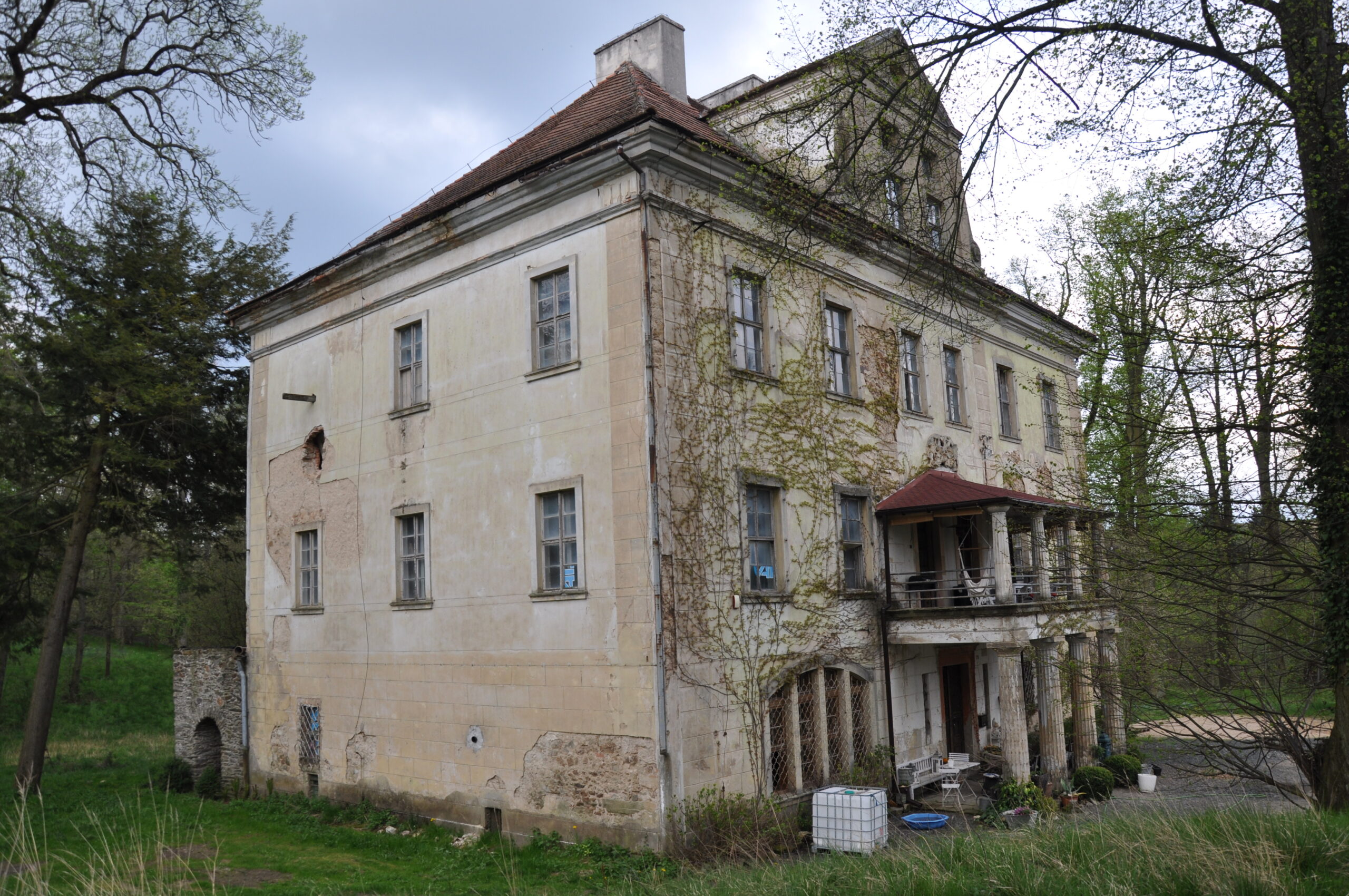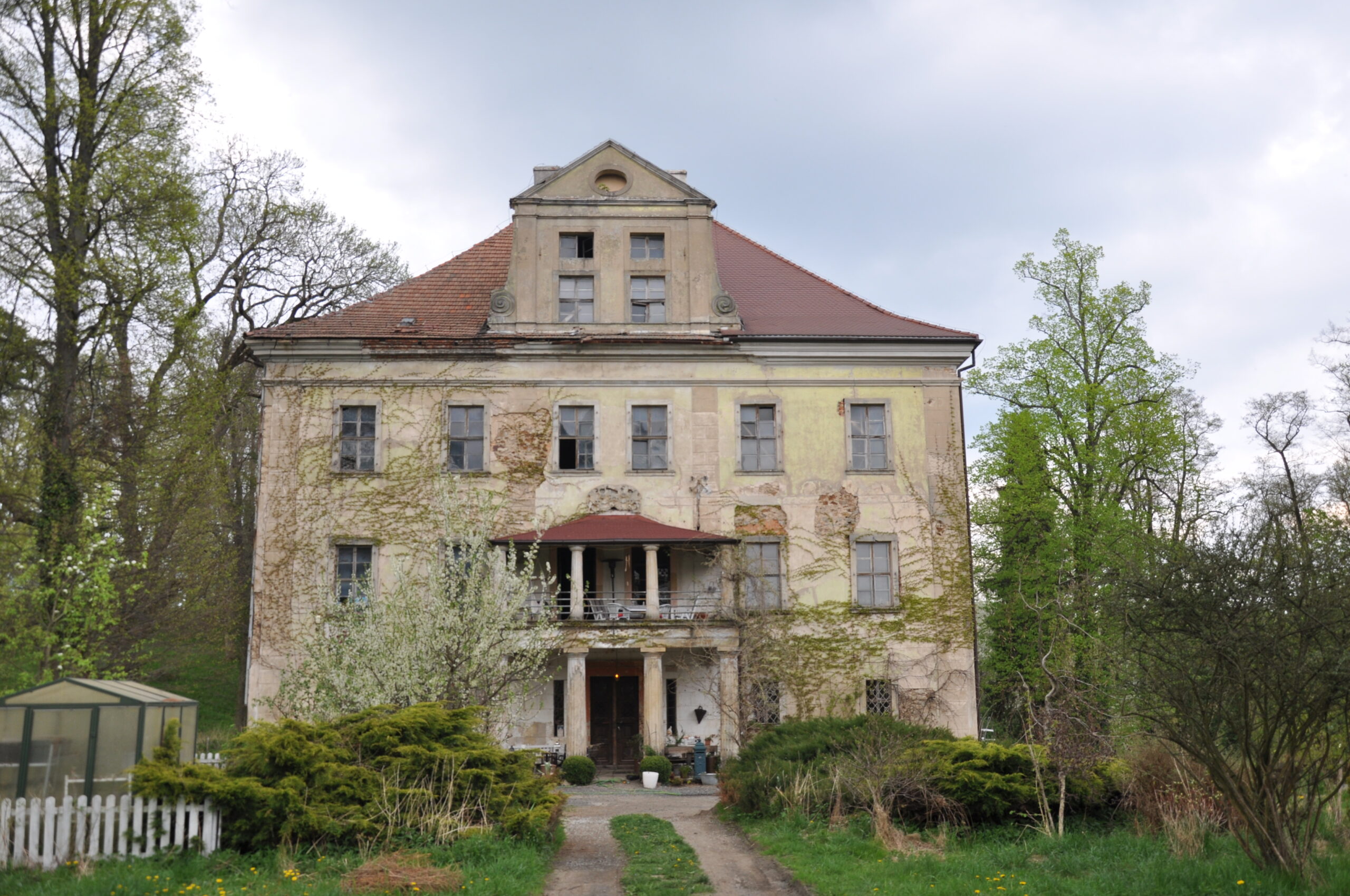 W rękach prywatnych, brama wjazdowa była otwarta więc wjechałem, pod gankiem paliło się światło, w środku szczekał pies ale nikogo nie było, obejrzałem tylko z zewnątrz.