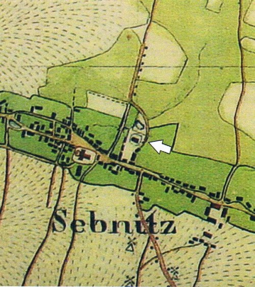 fragment mapy z XIX wieku z zaznaczonym obiektem