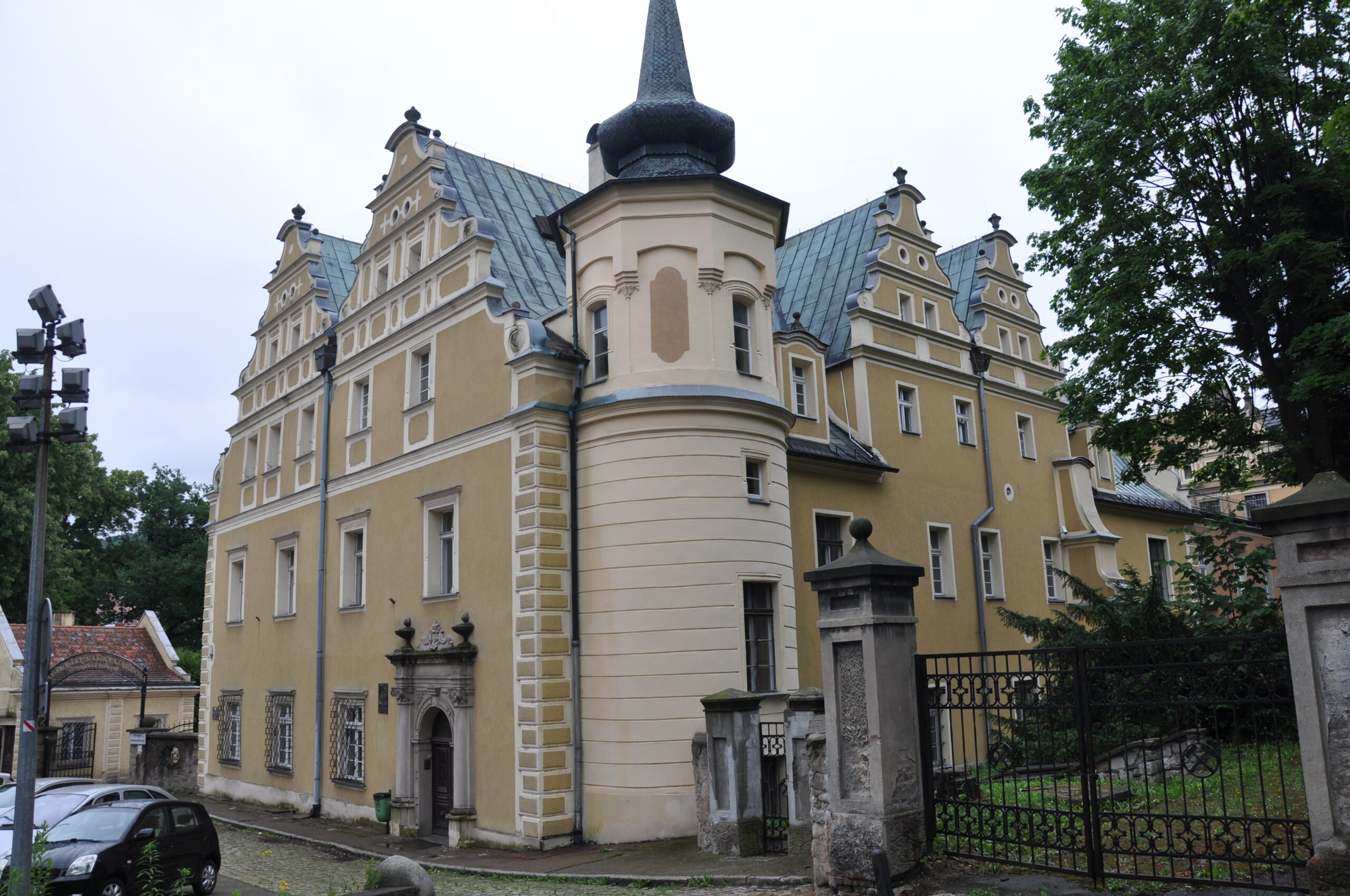 Dwór renesansowy nazywany też „zamkiem”, wybudowany został w latach 1604 – 1628 przez ówczesnego właściciela zamku Nowy Dwór i miasta Wałbrzycha – Dippranda Czettritza. W 1857 r. pałac jako siedziba administracji książąt pszczyńskich uległ rozbudowie, ponownie powiększony w latach 1881-1882. Założony na czworoboku, dwukondygnacjowy o elewacjach zwieńczonych podwójnymi szczytami. We wnętrzach mimo restauracji zachowało się kilka sal nakrytych sklepieniami kolebkowymi. Znajduje się przy ulicy Zamkowej 4. Obecnie znajduje się w nim siedziba Państwowej Wyższej Szkoły Zawodowej.