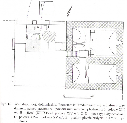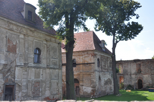 Pierwotny dwór powstał pod koniec XV wieku. Był on wówczas siedzibą kasztelana. W obrębie obecnego dworu z XVIII wieku, wzniesionego na zrębach starego założenia znajdują się ślady starszej budowli. Z obiektem tym sąsiadowała fosa o szerokości ok. 3m i głębokości ok. 1m. Obiekt ten zaliczany jest do grupy rezydencji o "pełnej kondygnacji piwnicznej". Kres istnienia tej warowni określa się na XIV wiek. Kolejny obiekt identyfikowany jest z murowanym dworem, który Hans von Rohnau sprzedał cystersom w 1447 roku wraz z folwarkiem. Dzieje tej warowni nie są bliżej znane.