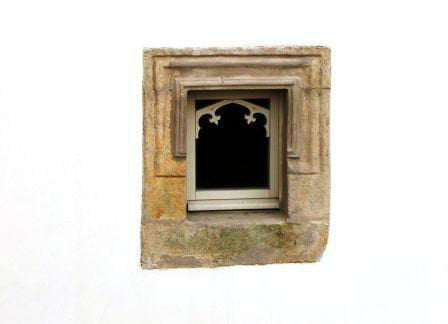 jeden z niewielu oryginalnych detali - małe renesansowe okienko w przyziemiu.