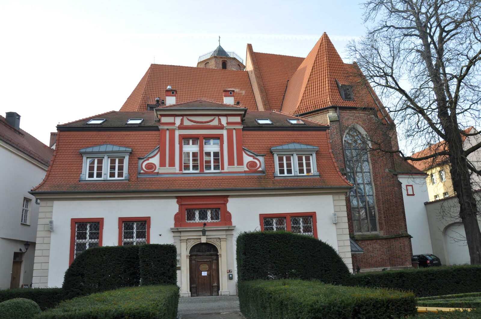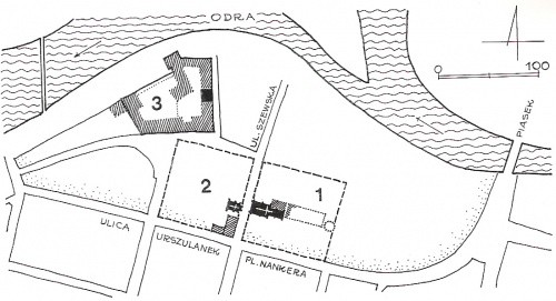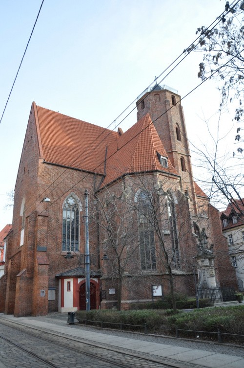 Mało znany ogółowi dwór obronny we Wrocławiu znajdował się w centralnej części lewobrzeżnego miasta. Była to druga wrocławska rezydencja władców, która śmiało mogłaby być określana jako kolejny zamek. fakt jego istnienia był znany od dawna jednak bez określenia lokalizacji i ukształtowania architektonicznego. Wszyscy badacze wiązali ten obiekt z miejscem późniejszego zamku lewobrzeżnego i na jego terenie usiłowali znaleźć relikty budowli XIII-wiecznej. Sugerowano jego lokalizację przy obecnym placu Nankera, pisząc o istnieniu podwójnych murów obronnych z wieżami otoczonych fosą. Nie zwrócono jednak uwagi na dokument fundacyjny szpitala św. Elżbiety wydany dla zakony Szpitalników. Ten dokument wystawiony przez księżną Annę i Henryka III zawiera opis darowizn który w tłumaczeniu z łacińskiego brzmi: "Dobra zaś, które wymienionemu szpitalowi i personelowi darowujemy i na których tenże szpital nasz jest założony są następujące: Curia w której znajduje się sam szpital i kościół św. Macieja na niej zbudowany. podobnież część curii matki naszej aż do zrujnowanej wieży ceglanej - po jej smierci pozostałą w istocie część wspomnianej curii darowujemy klasztorowi i konwentowi Braci Mniejszych we Wrocławiu". W innym zaś dokumencie z 1268 roku określa położenie dworu Anny: curia matris nostre que iuncta est claustro sancte clare. Dokument z 1253 roku a zwłaszcza wymieniona w nim wieża okazał się w przekonaniu autora główną wskazówka do poszukiwania dworu księżnej Anny. Istnienie zwartego i wyraźnie wyodrębnionego zespołu średniowiecznej architektury kościoła i przyległego budynku plebanii w połączeniu z odkryciem gotyckiego szczytu plebanii nasunęły przypuszczenia o pierwotnie rezydencjonalnej funkcji tego zespołu. Umocniła je interpretacja wzmianki o zrujnowanej wieży ceglanej w dokumencie z 1253 roku. Wskazywało to bowiem na istnienie 3 głównych składników XII-wiecznych rezydencji książęcych: dworu, kaplicy i wieży otoczonych obwodem mniej lub bardziej warownego założenia. Pozostałości XIII-wiecznego dworu mogły się zachować w pobliżu i w dolnej partii obecnego budynku plebanii pod nawarstwieniem przebudowy z XIV wieku widocznej we wspomnianym gotyckim szczycie północnym. Mógł on się wznosić na północnej nie podpiwniczonej części budynku plebanii i sięgał dalej na wschód aż do wieży. Ówczesną kaplicą był wtedy kościół św. Macieja, który pełnił funkcję dworskiego oratorium, dostępnego od strony budowli mieszkalnej. trzeci element rezydencji - wieża, miejsce schronienia i główny obiekt obronny to wspomniana już "zrujnowana wieża ceglana" która miała się wznosić na linii granicznej dzielącej posiadłość księżnej Anny na część przeznaczoną dla Szpitalników i Franciszkanów. szczególnie wazne jest tu określenie "zrujnowana" wskazujące na jej starszą metrykę i pozwalające identyfikację całości rezydencji dworu Anny z dworem Henryka I Brodatego. Księżna bowiem zajęta fundacjami klasztornymi rezydowała we dworze znajdującym się w ich sąsiedztwie. Z pewnością nie ona zbudowała wspomnianą wieżę, a jedynie odbudowała spalony w 1241 roku przez Tatarów dwór rezygnując już z odbudowy podobnie zniszczonej wieży tym bardziej, że trwała wtedy budowa murów miejskich. Wieża była więc prawdopodobnie zbudowana przez Henryka I Brodatego jako część jego dworu na lewym brzegu rzeki i jako wolno stojąca lub przyległa tylko do do budynku usytuowana była na dziedzińcu lub w linii obwałowania stanowiąc trzon wieżowego systemu obrony. Mniejsza skala rezydencji określanej mianem dworu (curia) i słabsze urządzenia obronne skłoniły zapewne do jej opuszczenia w czasie najazdu Tatarów w 1241 roku co spowodowało zniszczenie przez pożar. Z tego wynika, że dwór Henryka Brodatego i dwór księżnej Anny różnie dotąd określane i lokalizowane były tym samym obiektem. W podziemiu prezbiterium kościoła są zachowane resztki zburzonych ścian starszego założenia. Oględziny ścian zewnętrznych w podziemiach budynku duszpasterstwa wykazały istnienie wątku wendyjskiego w licu ich ceglanej konstrukcji potwierdzając tym XIII-wieczną metrykę budowli. O wieży wiadomo, ze powinna znajdować się po wschodniej stronie obecnej uliczki dzielącej dwa klasztory, nie dalej niż do kościoła św. Klary. Znajdowała się po po drugiej wschodniej stronie dziedzińca dworskiego przylegając do wschodniego krańca wydłużonego budynku mieszkalnego. Fundamenty wieży powinny się znajdować na wschód od obecnego gmachu duszpasterstwa na odcinku do zachodniej ściany kościoła Klarysek. Prawdopodobnie też Klaryski objęły cały teren kurii Anny. Szpitalnicy otrzymali natomiast dwór przyległy do kościoła św. Macieja, jak wskazują fakty, to określenie "curia" może oznaczać zarówno całość terenu jak i tylko sam budynek. Miejsce w którym wznosił się dwór z wieżą i oratorium tworzyło największe naturalne wzniesienie na omawianym terenie. Watek wendyjski (czyli pochodzący z dworu) można znaleźć w podziemiach kościoła, na zewnątrz kościoła przy zakończeniu jego wschodniej ściany od strony północnej, w budynku Maciejówki gdzie podłużne ściany pomieszczenia podziemnego są wzniesione na fundamentach z wątkiem wendyjskim oraz w podziemnej partii północnej strony budynku, oficynie (obecnie garaż) o grubych na ponad 1,3m murach, przyległej do obecnego gmachu duszpaterstwa.
