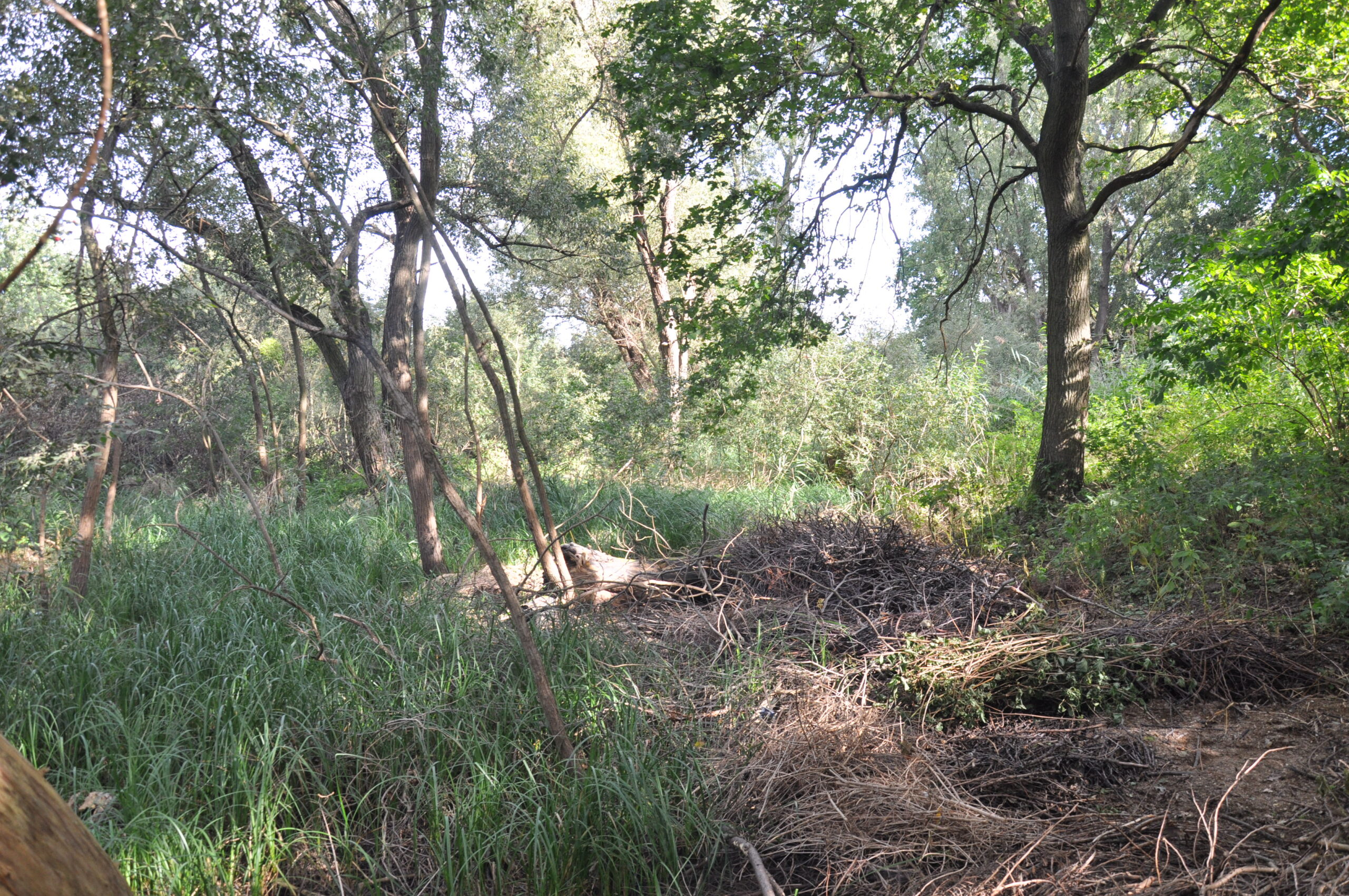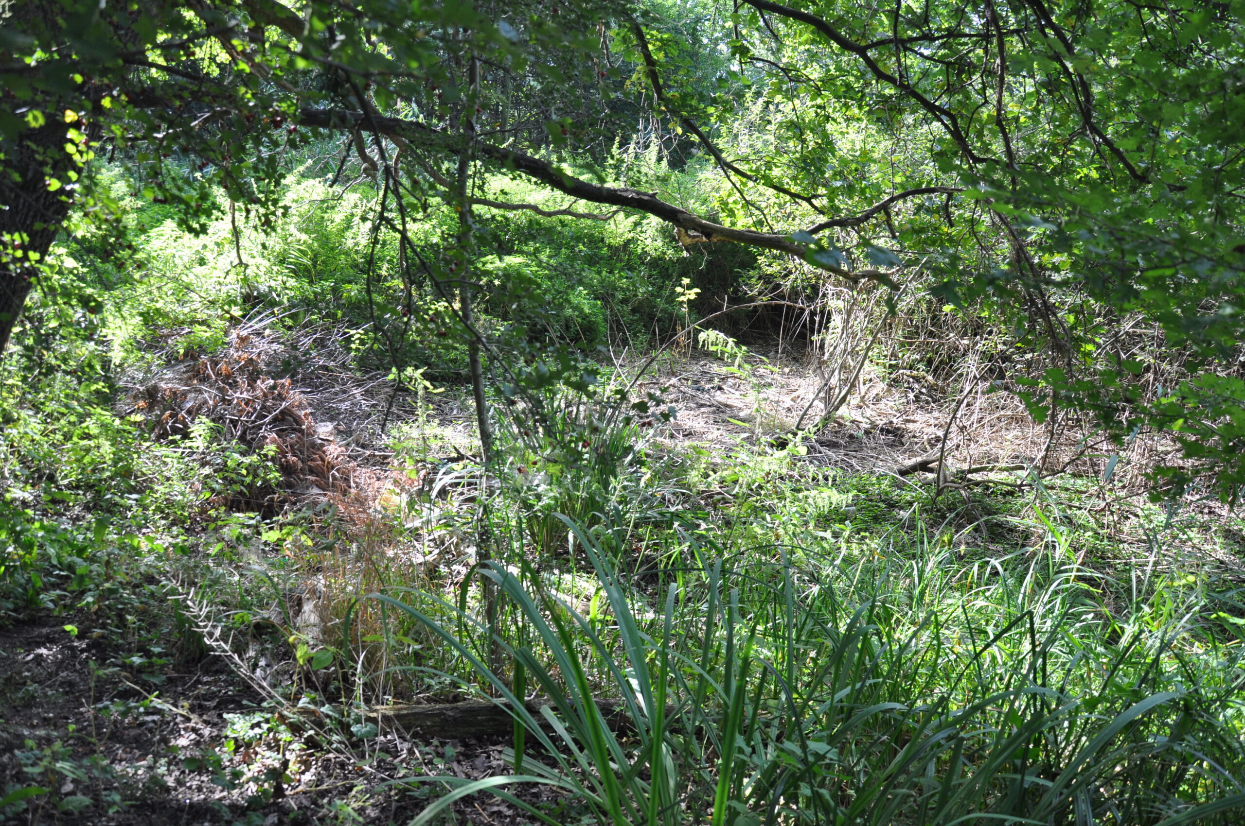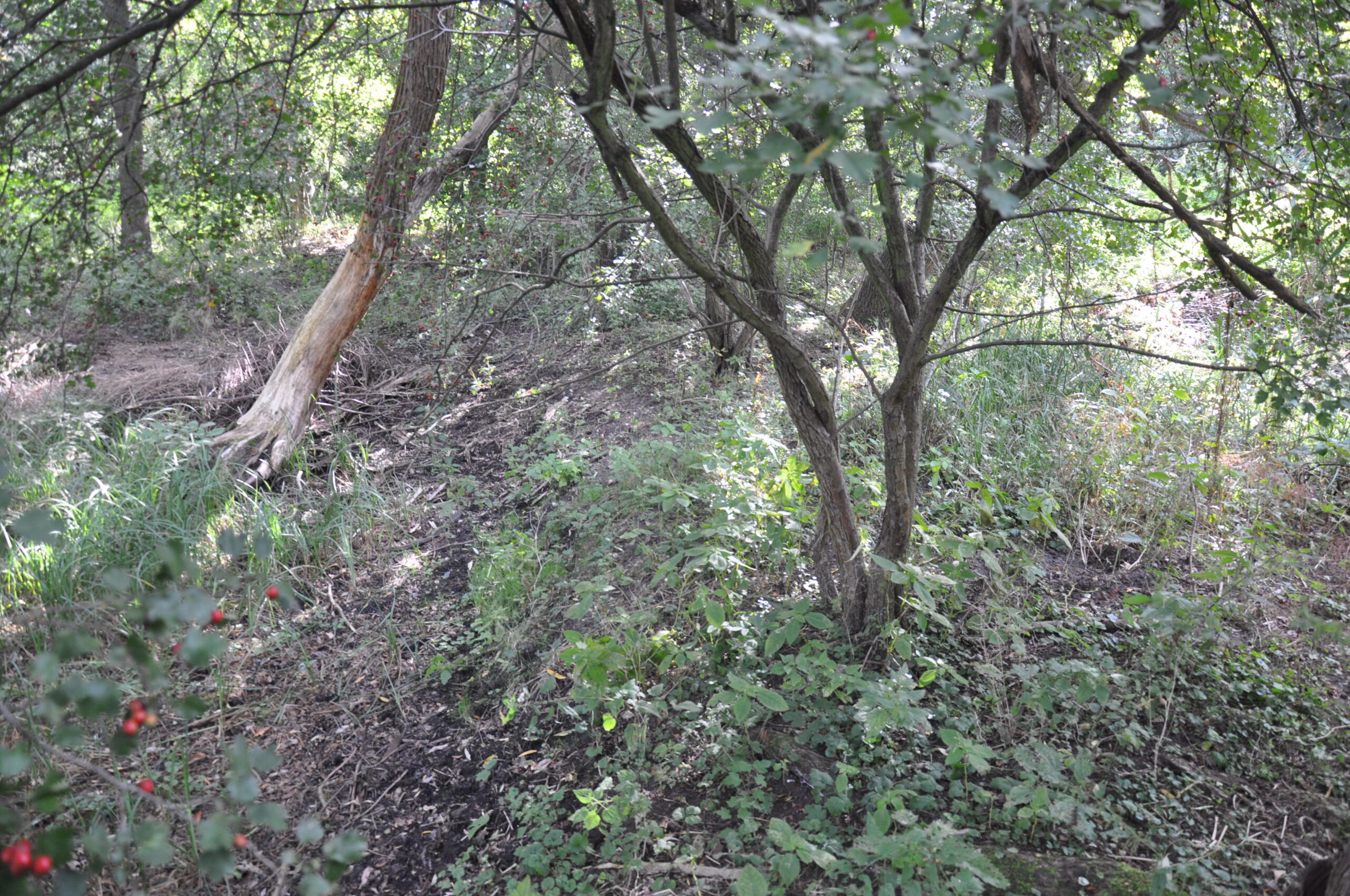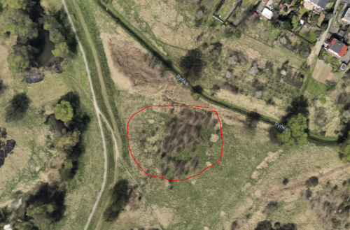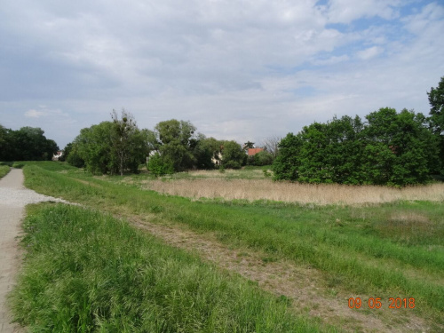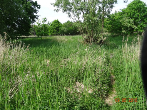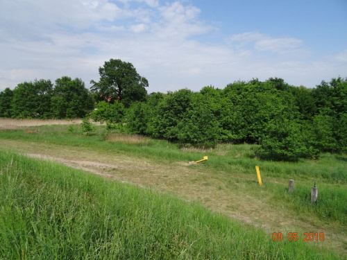 słabo widoczna grobla na dawny majdan