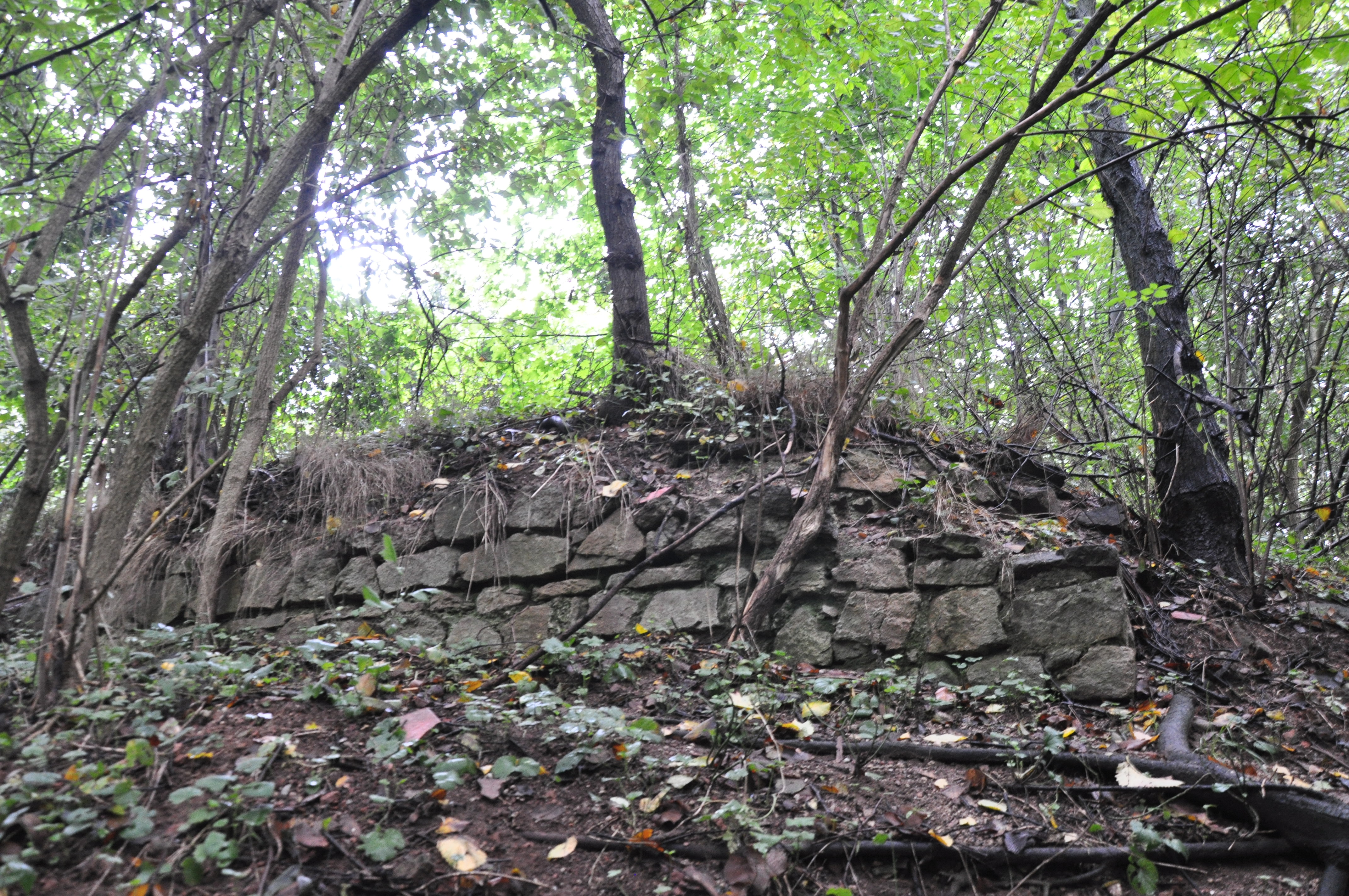 Dostosowany jest formą do konfiguracji terenu, powstał w wyniku odcięcia fosą niewielkiego cypla. Założenie ma kształt nieregularnego owalu (nerkowaty) o wymiarach u postawy 50x67m. Wypiętrzone w części N plateau o wymiarach 27x28m. Od strony N fosa o szer. 18-20m.przed wojną na majdanie czytelne były relikty prostopadłej budowli murowanej.