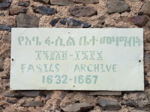 Archiwum Fasilidasa jest drugim znaczącym budynkiem wybudowanym za panowania tego cesarza. Z zewnątrz niewiele różni się od pozostałych zamków, a nawet w wyglądzie posiada bardziej zamkowy charakter. Niestety do obecnych czasów przetrwały jedynie mury zewnętrzne z kwadratową okazałą wierzą. Budynek został zniszczony w czasie II wojny światowej, podczas nalotu Brytyjczyków na kwaterę włoską.