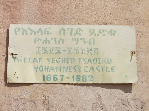Yohannes’s Castle 1667 – 1682. Yohannes I był bardzo pobożnym władcą i większość funduszy przeznaczał na budowę kościołów (do czasów współczesnych zachował się jeden: Debre Berhan Salassie (uważany za jeden z najwspanialszych w Etiopii)), wobec czego jego zamek jest najmniej okazały. Dwukondygnacyjny gmach pełnił funkcję biblioteki oraz kancelarii cesarstwa. Do naszych czasów przetrwał w dobrym stanie.