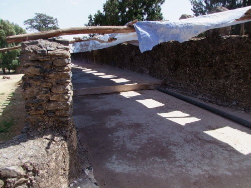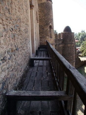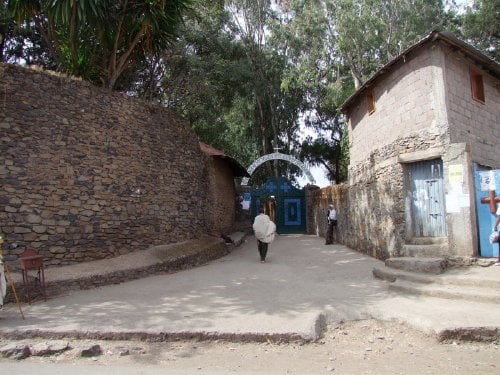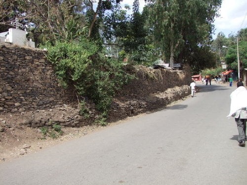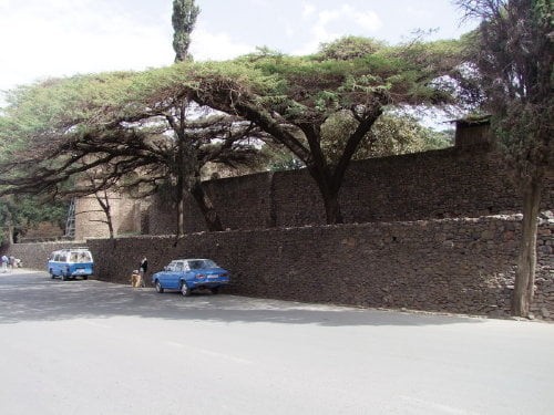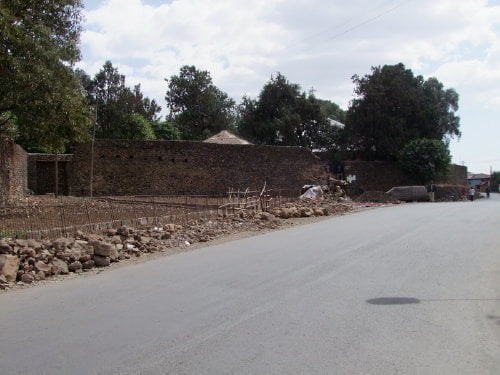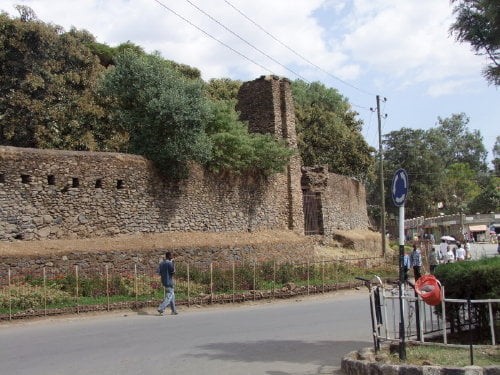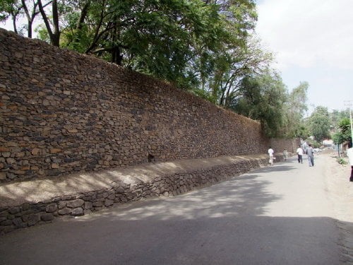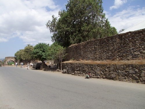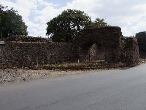 Na pierwszym zdjęciu widok na kompleks ze wzgórza gdzie znajduje się kościół Debre Berhan Salassie. Na drugim zdjęciu brama Sędziów (główne wejście do kompleksu), dalej mury z zewnątrz (tylko jedno zdjęcie bramy Rasa jest od wewnątrz), dookoła zaczynając od prawej strony.