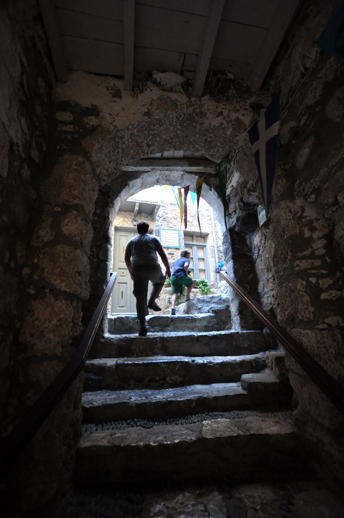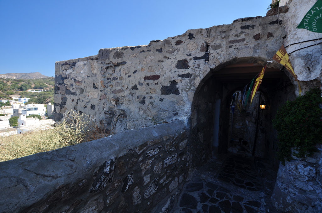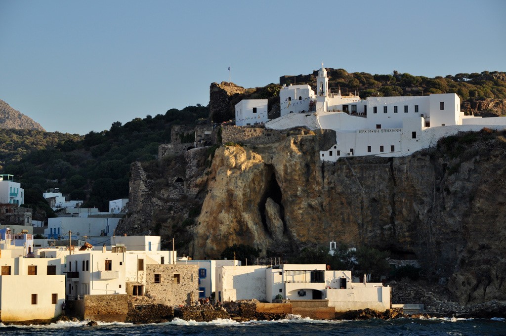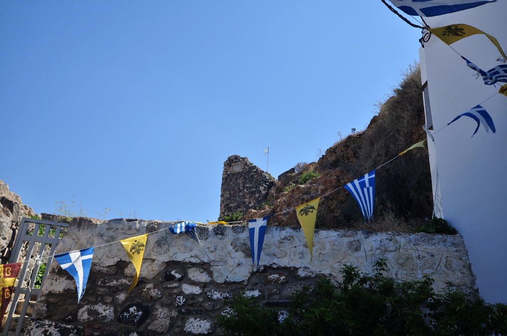 Ruiny zamku joannitów. Na jego terenie powstał około 1600 r. klasztor prawosławny Moni Panagia Spilianis z ikona Matki Boskiej z Dzieciątkiem. Ponad ruinami zamku i klasztorem znajduje się Palaiokastro, akropol z czasów hellenistycznych