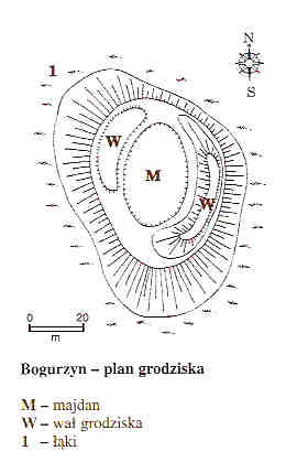 Po lewej stronie drogi Bogurzyn-Zawada, na wzniesieniu w dolinie rzeki Mławka relikty wczesnośredniowiecznego grodziska datowanego na XI wiek. Należy do typu grodzisk pierścieniowatych. Wał ma wyskośc ok 3 m., a jego długość wynosiła ok 100m. Do dziś zachowały się ślady nasypu w części wschodniej i zachodniej. Majdan miał średnicę ok 23 m. (źr:Zamki i warownie ziemi mazowieckiej)