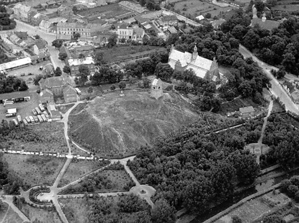 zdjęcie lotnicze grodziska w latach 50-tych XX wieku ze strony TOnZ