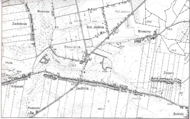 Plan Jedlni z zaznaczonym dworem