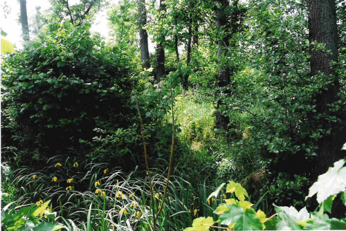 Udało mi się je wreszcie znaleźć. Wbrew informacji jaką miałem, że znajduje sie w pobliżu dawnego parku, obiekt położony jest w lesie. Autor tej informacji jako obiekt przy parku musiał uznać to co jest na zdjęciu poniżej. Widać wyraźnie koliste wzniesienie, zarośnięte, jednak przy penetracji okazało się jest to tylko krzewów na płaskim terenie w kształcie koła, żadnych zagłębień, wzniesień, nic. Wtedy nabrałem podejrzeń gdyż na grodzisko ten obiekt mi całkowicie nie pasował.