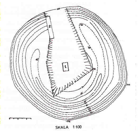 Plan sytuacyjno-wysokościowy obiektu wg. G.Kotkowskiej
