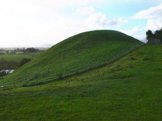 Normański zamek Twthill Castle, a właściwie motte wzniesiony przez Roberta of Rhuddlan w 1073 roku. Wysokość motte wynosi ok 12m.