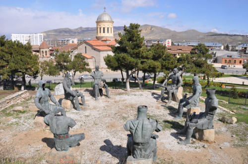 pomnik rycerzy okrągłego stołu u podnóży zamku