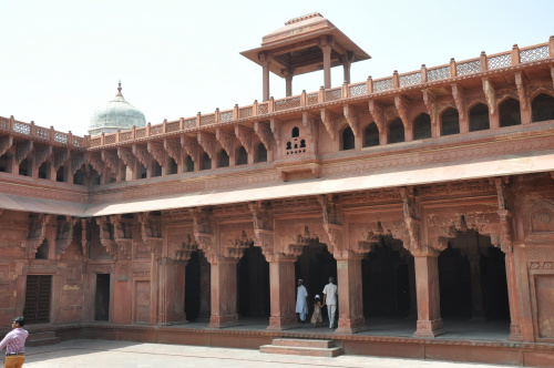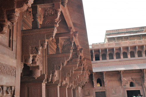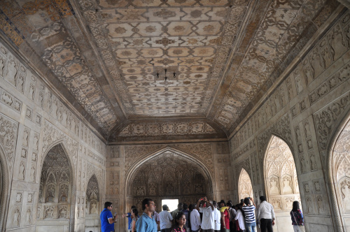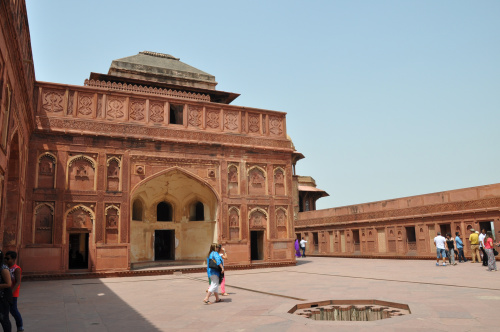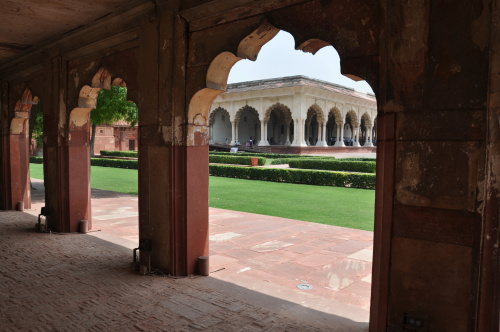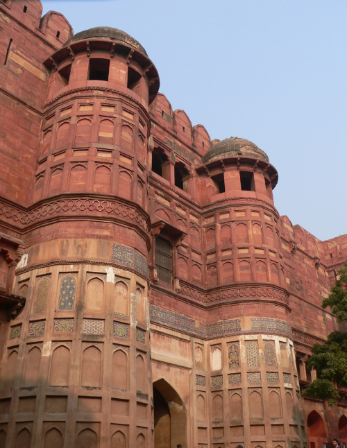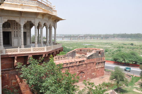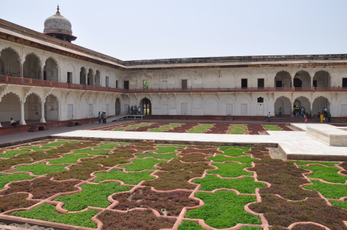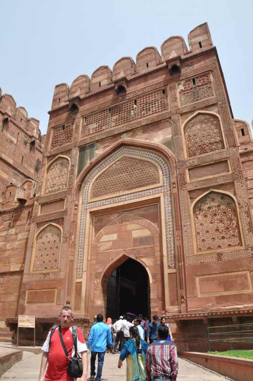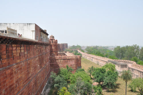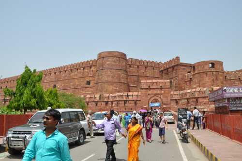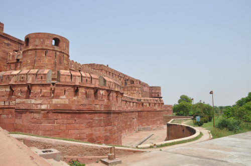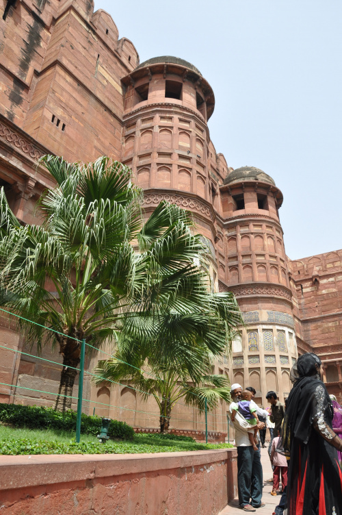Czerwony Fort jest w istocie zespołem budowli zamkniętych wewnątrz potężnych, czerwonych murów zewnętrznych o wysokości do 20 metrów i łącznej długości około 2,5 kilometra. Obecnie do wnętrza fortu wchodzi się przez bramę Amara Singha, zwaną również Bramą Lahore (jedną z dwóch istniejących; drugą jest Brama Delhi). Wewnątrz znajduje się szereg budowli, głównie o charakterze pałacowym, w tym: Moti Masjid (Meczet Perłowy) – wykonany z marmuru, uważany za jeden z najpiękniejszych meczetów Indii, Diwan-i-Am – sala audiencji publicznych, Diwan-i-Khas – sala audiencji prywatnych, gdzie władcy mogolscy przyjmowali dygnitarzy i zagranicznych gości. W tym miejscu znajdował się słynny Pawi Tron, przeniesiony później do Delhi, a następnie do Iranu, Khas Mahal (pol. Pałac Dżahangira) – prywatna rezydencja władców mogolskich zbudowana przez Akbara dla syna, Shish Mahal (pol. Pałac Luster), Nagina Masjid (pol. Meczet Klejnotu)