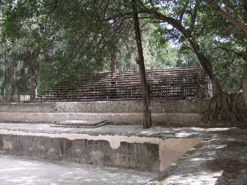 Cały kompleks jest dość rozległy i w całość otoczony pokaźnym murem z brązowego bazaltu. W murach znajdują się 6 wierz i jedna brama. Są one identyczne jak w kompleksie zamków. W centrum ogrodzonego terenu znajduje się spory basen o wymiarach 70 x 40 m. Dookoła jest ogrodzony niewielkim murem z paroma wejściami. Przy krótszym boku, od strony bramy, w basenie stoi niewielki budynek w wyglądzie przypominający zamek. Na jego parter prowadzi kamienny most. Budynek jest jednopiętrowy i posiada kwadratową wierzę. Cały pozostały teren wewnątrz murów jest zajęty przez coś w rodzaju dużego parku.