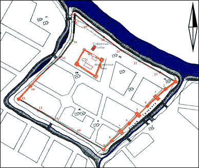 schematyczny plan kremla na tle współczesnych ulic
