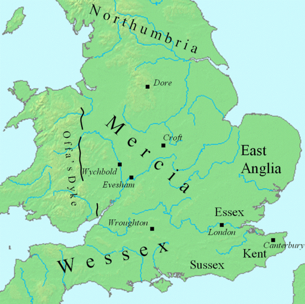 wały zaznaczone na mapie wysp brytyjskich w 802 roku