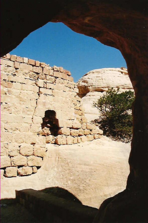 Zamek Al Wueira w całości zbudowany przez Krzyżowców. Na jednym z ostatnich zdjęć widać, że skalna rozpadlina pełniła rolę fosy, cały obiekt był na takiej skalnej "wysepce" więc ewentualne zdobycie go było naprawdę mocno utrudnione (skała zamkowa to ta po lewej stronie, widać w niej resztki murów które się tam osunęły)