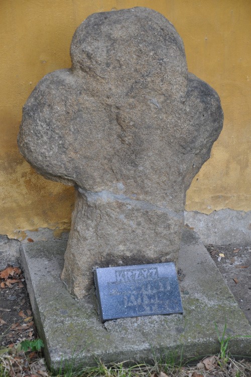 Biała w woj opolskim, krzyż pokutny wmurowany w ścianę zamku
