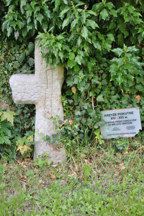 przy murze, w obrębie murów na lewo od wejścia do kościoła
