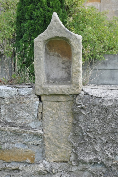 kapliczka pokutna w murze otaczającym kościół Podwyższenia Krzyża Świętego