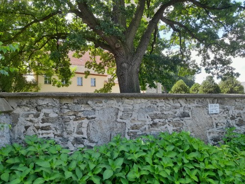 W murze kościelnym znajdują się trzy krzyże pokutne oraz dodatkowo jeden przy pręgierzu.