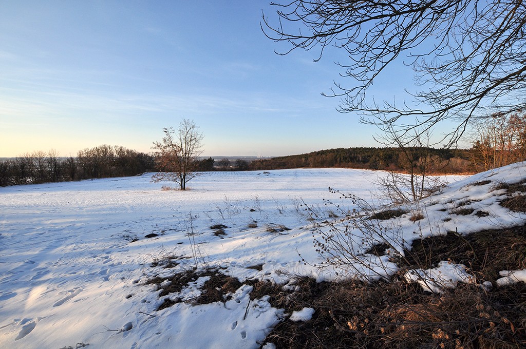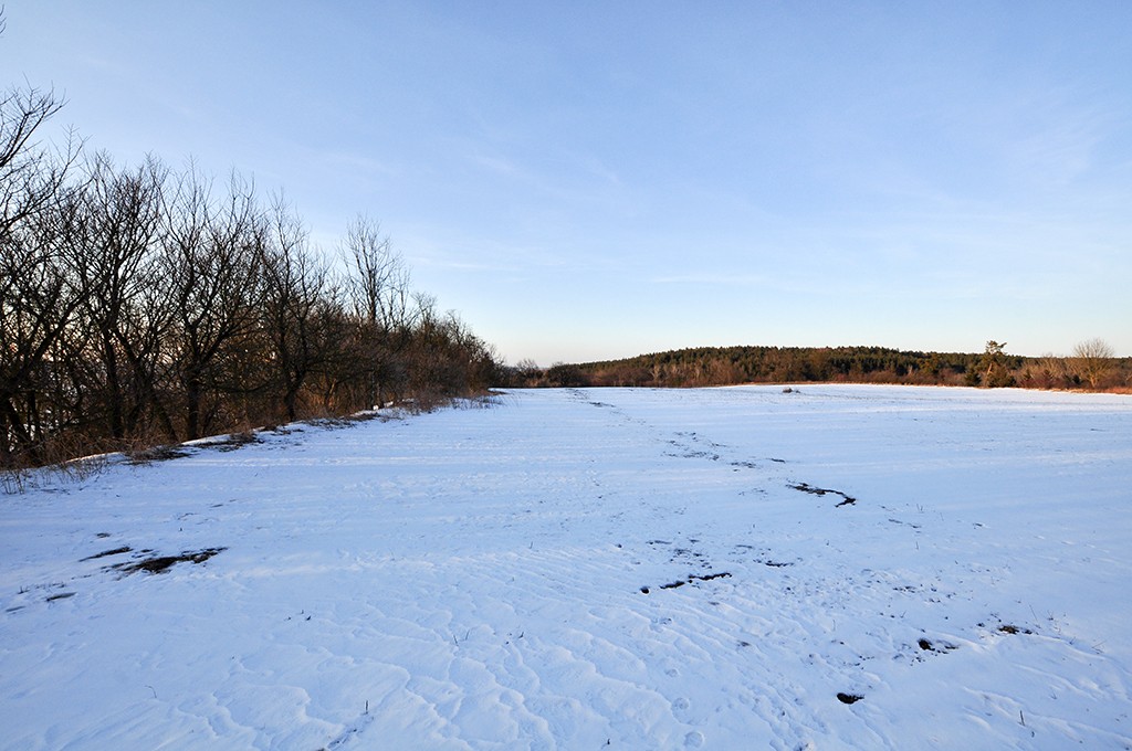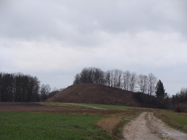 Majdan grodu (wał zniwelowany, widać zaledwie delikatną różnice poziomów - widok od strony podgrodzia).