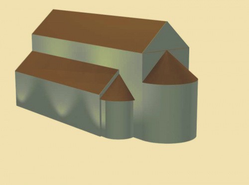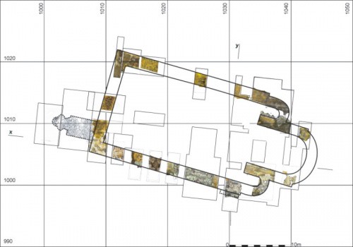 Plan bazyliki romańskiej z I połowy XIw. z zachowanymi partiami ścian