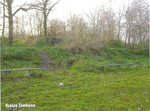 Wygląda na to, że jednak się myliłem pisząc, że nie ma dwóch obiektów w Kruszy Zamkowej. To co przedstawiłem zdaje się być grodziskiem nr 2, stożkowym. O ile się zorientowałem to obiekt dwufazowy znajduje się kawałek dalej.