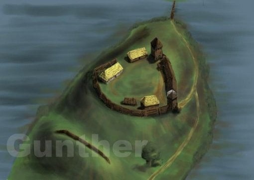 rekonstrukcja grodu autorstwa Jerzego Sikory pochodzi ze strony: http://gunthera.wordpress.com wraz z komentarzem autora: Obrazek to rekonstrukcja zamku w Raciążu (koło Tucholi). Co prawda wszyscy piszą, że to gród (prawie wszyscy), to jak sądzę, był to zamek. Tyle, że drewniany… (a czym różni się gród od drewnianego zamku?).