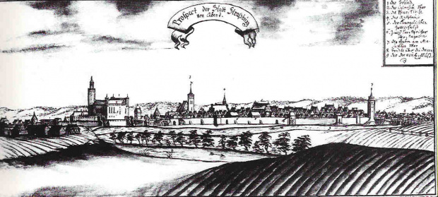 miasto i zamek na rycinie J.F.Steinera w I połowie XVIII wieku
