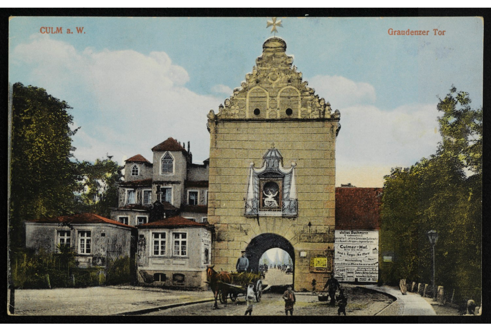 Poniżej Brama Grudziądzka w okresie międzywojennym