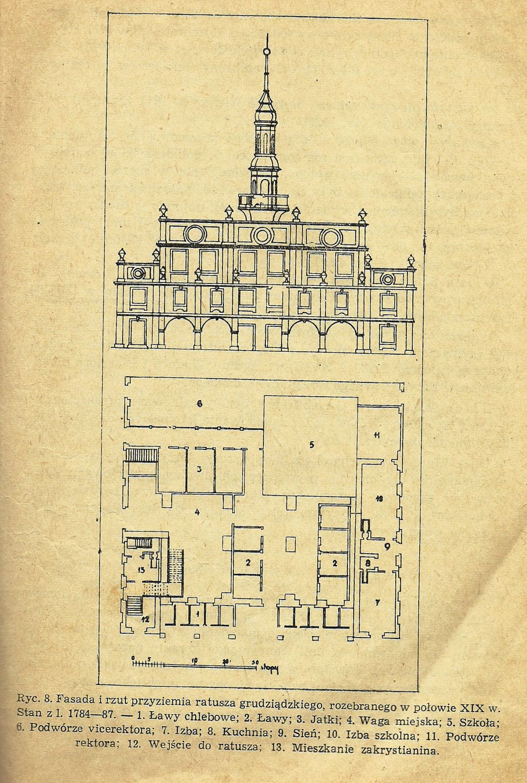 W badaniach nad dziejami tego miasta zignorowano centralnie położony kompleks szkolny na obecnym Rynku. Składał się on jeszcze w XVIII w. z domu konrektora, szkoły, oratorium, mieszkania zakrystiana, browaru. Był to model typowy dla szkół wzorowanych na Oxfordzie. Badacze niemieccy istnienie szkoły zaczynali, ze względów politycznych, od reformacji, czyli w przypadku Grudziądza od 1540 r. Natomiast badacze polscy nie wdawali się w dyskusję, dlaczego przy protestanckiej radzie miejskiej, szkoła przez nią administrowana była do 1584 r. prowadzona przez zgromadzenie księży, czyli kanoników regularnych. Również nie zadano źródłu, jakim jest wykaz 18 rektorów i 12 konrektorów z lat 1540-1772, podany przez X. Froelicha pytania, dlaczego była to pełna szkoła czterowydziałowa? Wykładano teologię, filozofię, prawo, sztuki wyzwolone. Rektorami szkoły, na wzór boloński byli też niejednokrotnie studenci