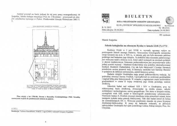 3. Ratusz Toruński i Kolegiata Grudziądzka – wspólne korzenie cysterskie. W: „Biuletyn Przedmiotowy Nauczycieli Historii”, 1998, nr 10, s. 51-55