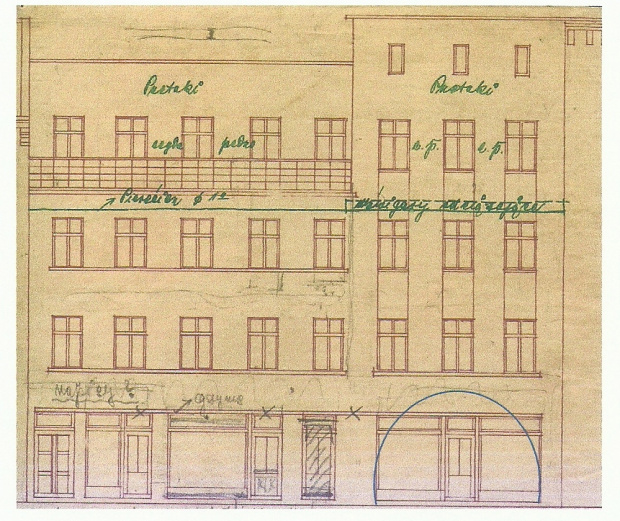 9. Plan budowlany kamienicy przy Pacu Młosników Astronomii 6-8, z okresu międzywojennego.