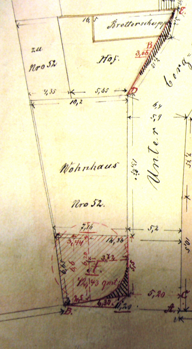 Wyjaśnienie tej kwestii i dlaczego budynek jest w widłach ulicy można znaleźć, czytając plan katastralny z 1772 r., (3).