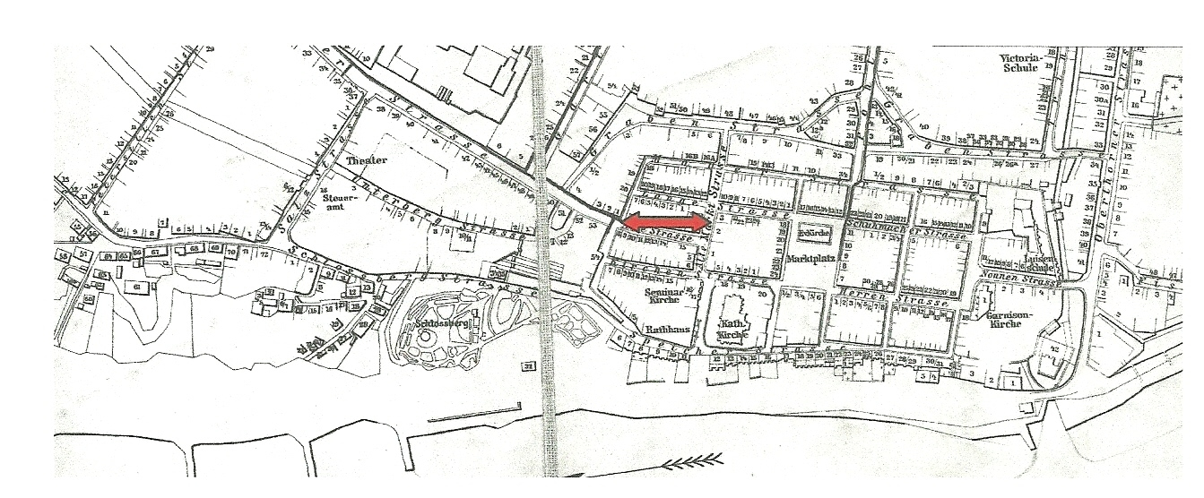 Lokalizacja obecnej kamienicy przy ul. Starej 23 jest charakterystyczna, w widłach ul. Podgórnej, do wylotu w kierunku Bramy Łasińskiej, (zwanej też Kwidzyńską). Taka lokalizacja tej posesji jest też na planie katastralnym Grudziądza z 1872 r. (1). W Archiwum Państwowym w Toruniu, znajduje się teczka z planem sytuacyjnym tej kamienicy z 1890 r. , (2).