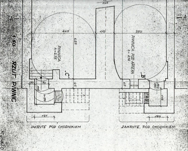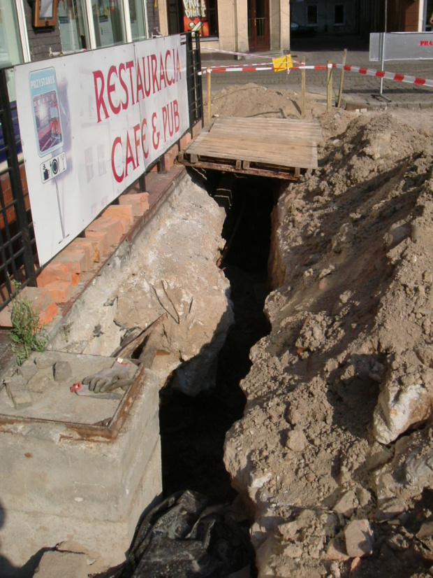 . W 2010 r., przy okazji remontu płyty Rynku odkryto przy sąsiednim budynku , od strony wschodniej relikty pach sklepień, (ryc.9). Te pachy korespondują z zachowanymi wnękami pod chodnikiem w kamienicy przy Rynku 20, zinwentaryzowanych przez Cz. Opałkę w latach 60 XX w.