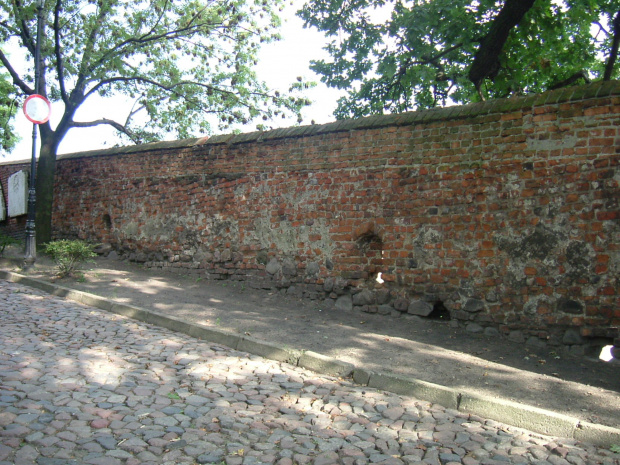 Interesującą informację zawiera kolorowa panorama E. J. Dahlberdha, wykonana przez W. Swidde z 1694 r. , (4). Na tej panoramie jej autor wyraźnie odróżnił budowle konstrukcje drewniane od murowanych. Za mostem Bramy Łasińskiej zaznaczył wzdłuż obecnej ulicy starej ceglany mur kurtynowy. Kurtyny wykonano także w formie drewnianych palisad. Zapewne ostatni zachowany relikt takiego muru kurtynowego w tym rejonie ze średniowiecza rozebrano zniszczono we wrześniu 2017, rozbierając kamienice przy ul. Kościelnej 31. W sieni tej kamienicy był fragment takiego muru kurtynowego z blendami. Obecnie taki mur kurtynowy można np. zobaczyć na zamku krzyżackim w Toruniu.