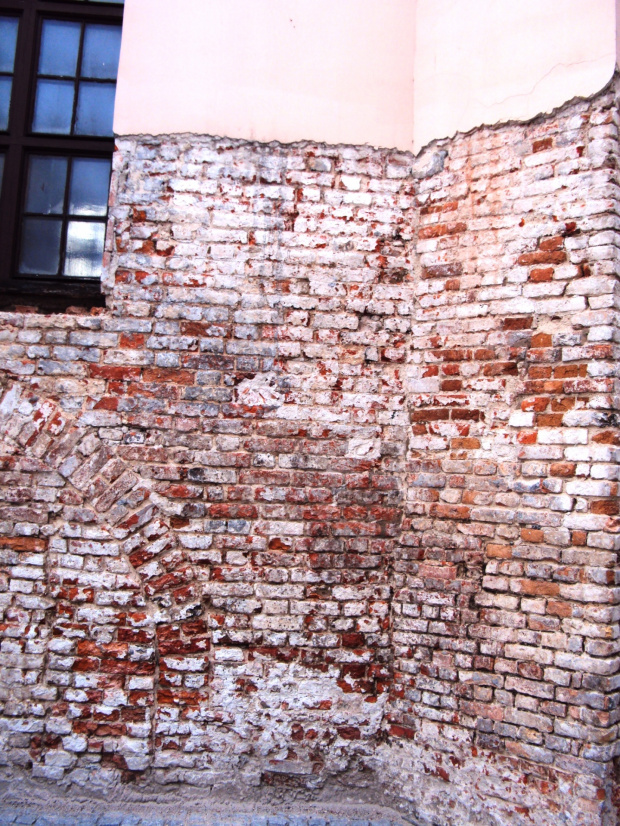 Mur wewnętrzny powstał zapewne z cegieł formowanych przez garncarzy i jest z cegieł „niedopałek” . Natomiast mur zewnętrzny powstał z cegieł wykonanych w profesjonalnej cegielni strycharskiej. Jest to jednak również materiał gorszego gatunku. Cegły pierwszego gatunku – „wiśniówki” wybrano np. na budowę kościoła św. Mikołaja.