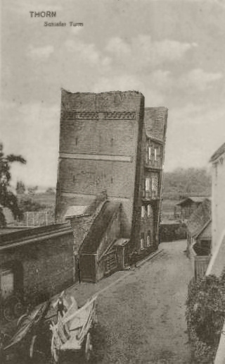 Krzywa Wieża jest średniowieczną basztą miejską, która swą nazwę zawdzięcza znacznemu odchyleniu od pionu (1,46 m).