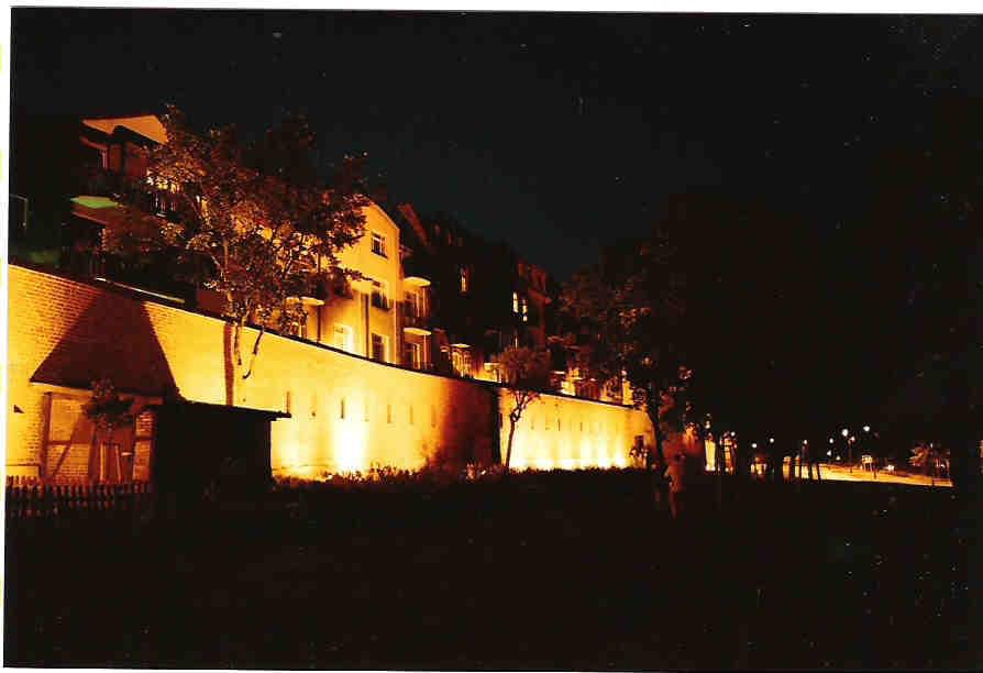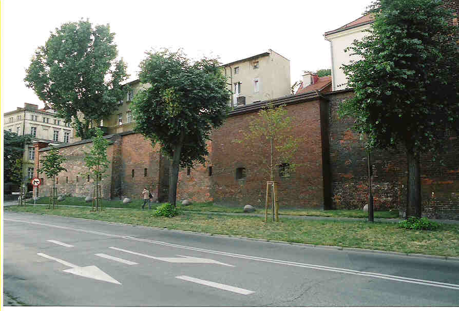 Odcinek zachowanych murów miejskich ciągnący sie wzdłuż Wisły oraz na Starym Mieście