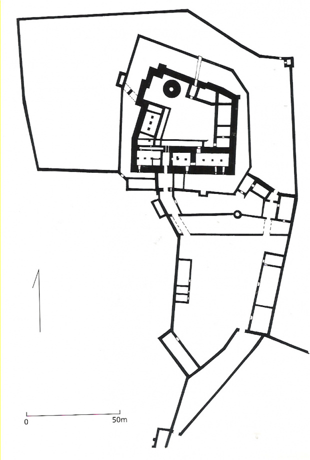 Co do planu zamku. Zachowane relikty pokrywają się z planem inwentaryzacyjnym zamku z około 1750 r., już tu też publikowanym. Nie ma na nim gdaniska. Runęło on przed 1765 r. Możliwe, iż w czasie rysowania planu już nie istniało.